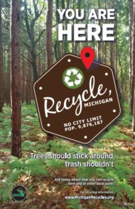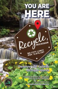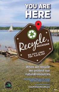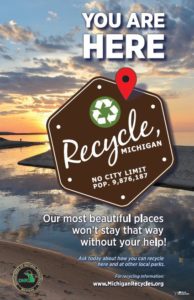 The Michigan Department of Natural Resources is now working on providing recycling at all state parks, harbors, and recreation areas in the state, and they’re using Recycle, Michigan to promote it! The posters below were developed for this purpose. Recycle, MI helps to build continuity and recognition for recycling programs across the state.